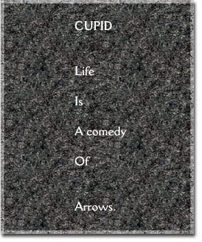 Romance and humor are two of my favorite preoccupations! Point me in the right direction --- and I am there! Sure we all make mistakes along the way ( both in and out of love ). But aren’t you ever struck by the awesome possibilities that love creates in our lives? Picasso once said: “I never search --- I only find!” How arbitrary is love really? How capricious and sweet? I never really “find” love --- I let love “find me!” And that’s as fun as it gets . . . |