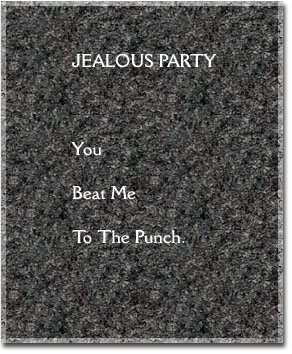 “If I can’t have you --- everyone will!” That use to be my blasphemous credo for jealous people in bad relationships, until I realized that this philosophy might not “stand up” too well on the Oprah Winfrey Show. In any case, jealousy has torn apart as many relationships as love has put people together. No doubt this phenomena contributes to the steadily rising divorce rate in America ( which has climbed past 50% ). The unsettling truth is that pointing fingers and sharper claws never cure “the inseparables!” And most of us are rather petty when it comes to bickering with those we say we love while not realizing, that in the end, that can not “fight off” our best supporters in a brutal and insane fashion --- “love will set you free!” |